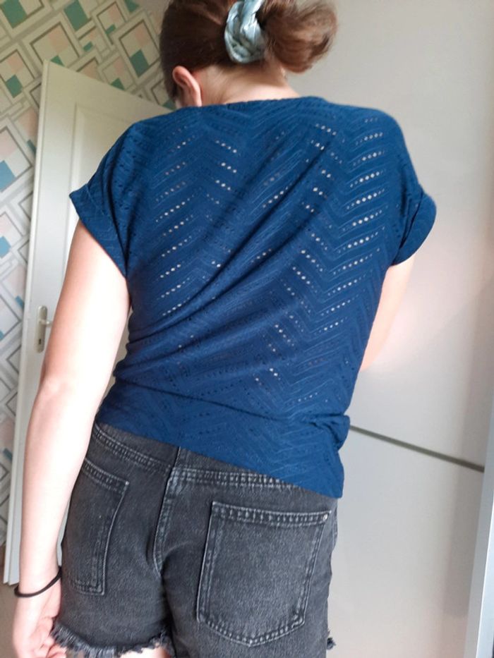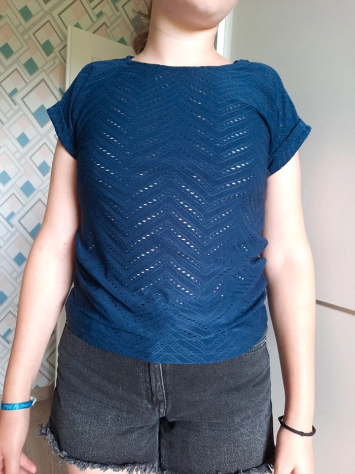 Tee-shirt manches courtes ajouré marine. Kiabi. Taille XS. Très bon état #celineggnt_femmexs