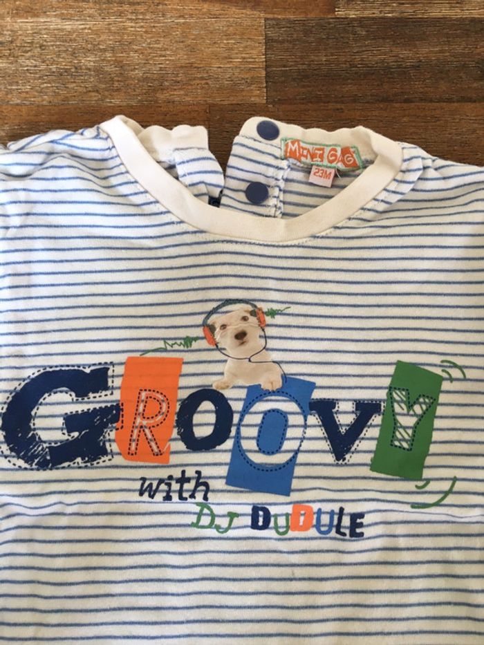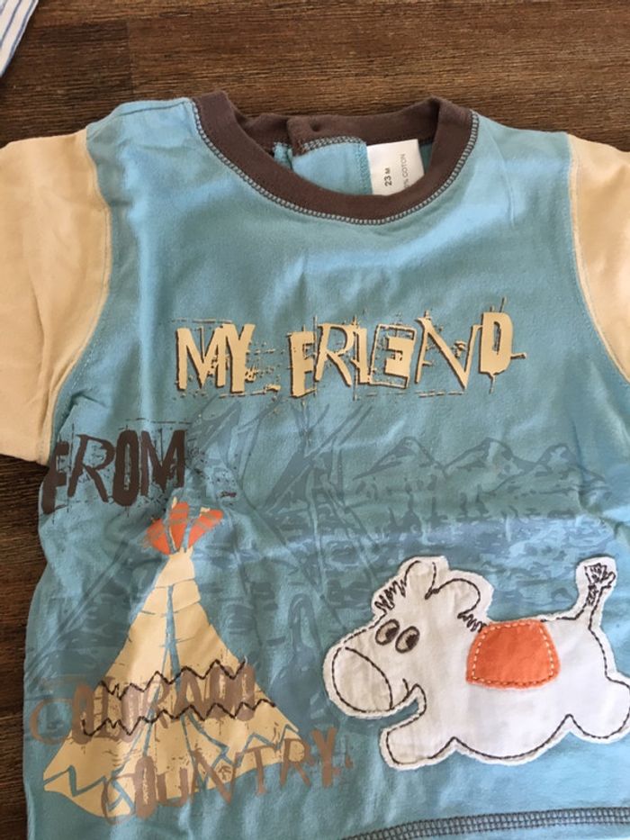 Lot 2 t shirts coton manches courtes/rayé et  imprimés/23m - photo numéro 3