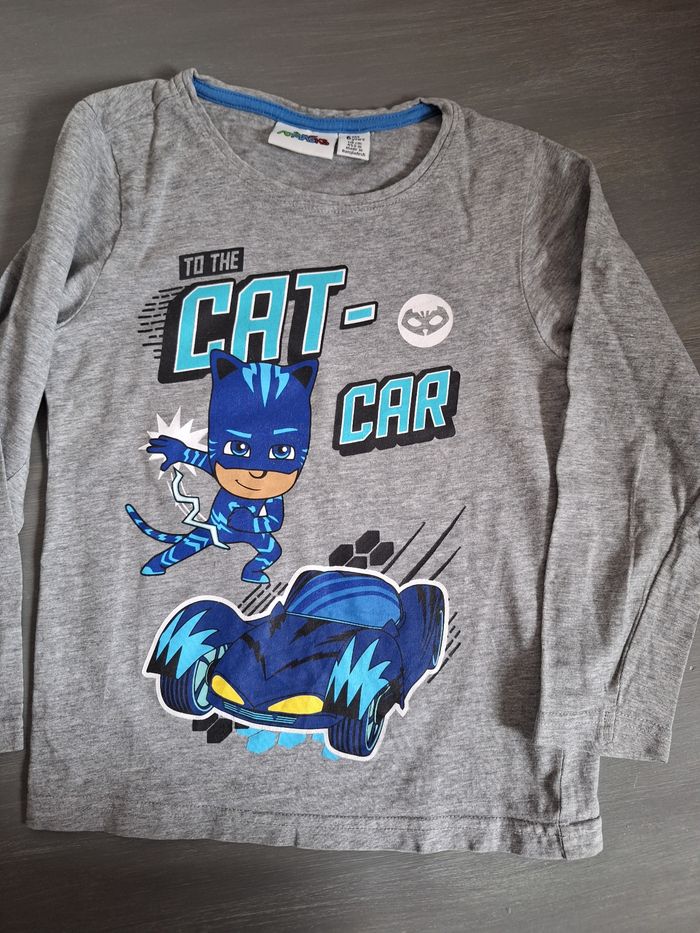 GARÇON 6 ANS N°226 Maillot lm , gris " pjmasks" 90% coton 10% viscose Taille 6ans 1€ #kelly_garçon6ans