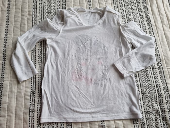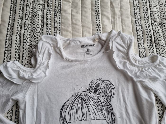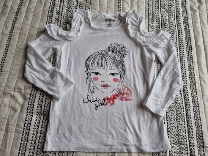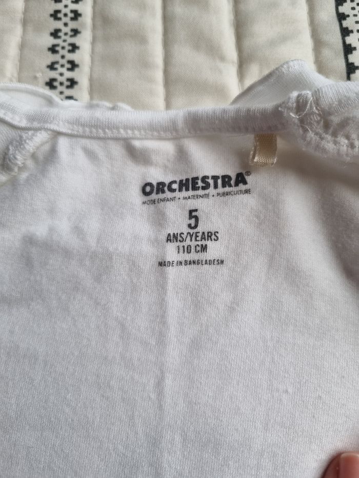 Très très jolie t-shirt avec ses manches longues et les épaules nuée Matériel très fine et agréable à toucher Très bon état Pas de tâche ni de trou Orchestra 5ans 110cm (pas d'étiquette pour plus des détails)