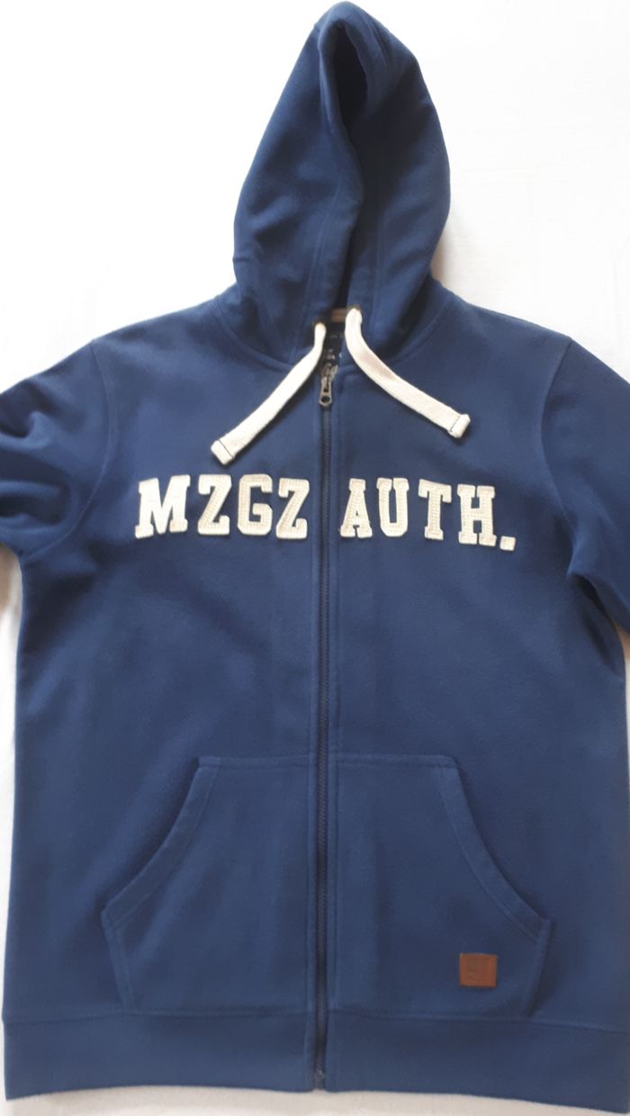 Vends gilet zippé homme, tendance avec un visuel MZGZ Auth. brodé, composé d’une matière polaire tout doux qui offre beaucoup de chaleur. Finition bord-côtes aux poignets et dans le bas, il se ferme par un zip assorti. Il possède 2 poches kangourou. On le porte seul ou sous un coupe-vent. Son atout : confort molletonné extra douce à l'intérieur. Composition : 100% polyester. Longueur du vêtement : 71 cm. Largeur des épaules : 47 cm. Taille : L. Marque : MZGZ.