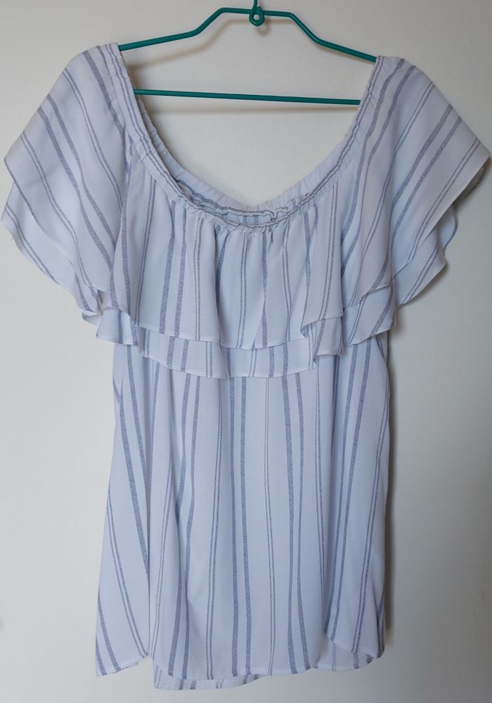 Chemisier col Bardot avec volants Marque : Etam Taille : xl 100% viscose Lavable à 30°C Très bon état