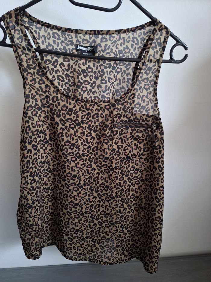 FEMME 36 / S N°1528 debardeur Panthère Marron/ noir 95% polyester 5% elasthane Taille 36 / s Jennyfer 3€ #kelly_femmeT36