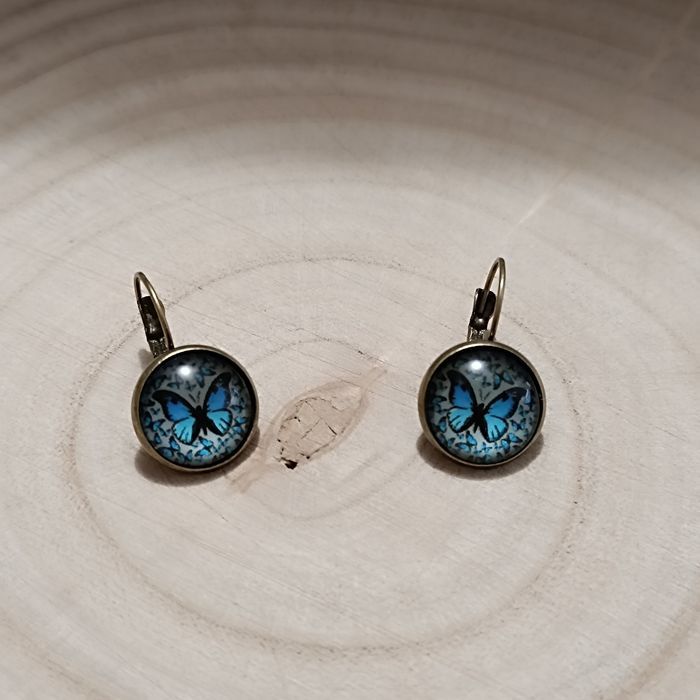 Jolie boucle d'oreille papillon bleu