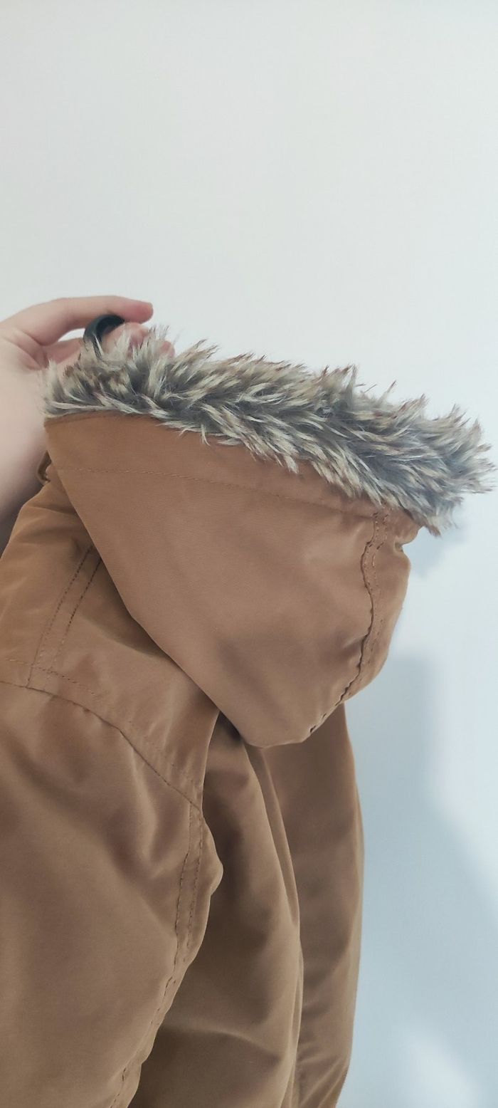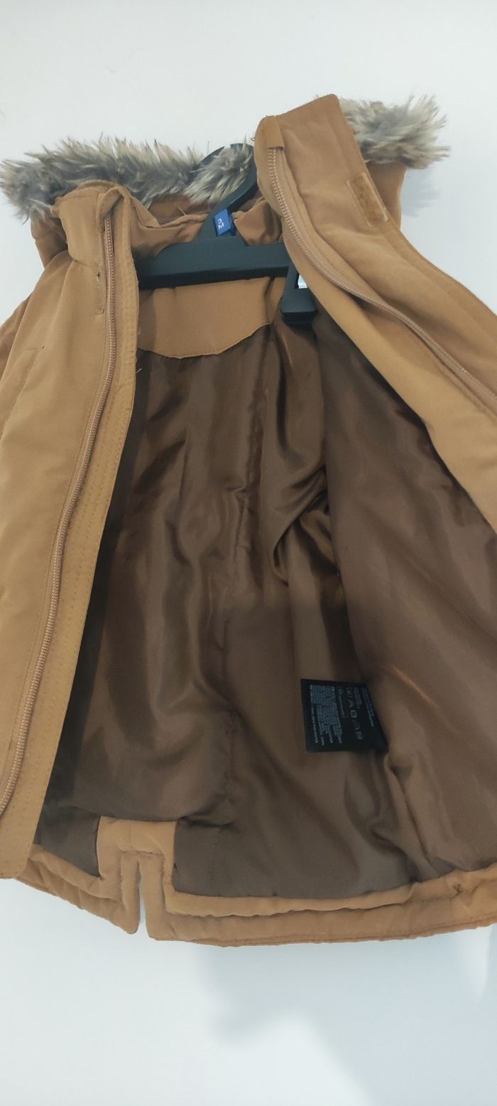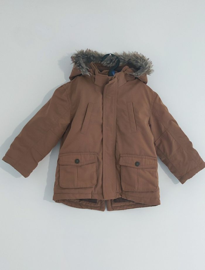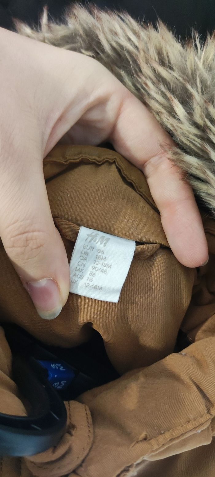 Manteau h&m en très bon état Ce ferme avec une fermeture éclair et des pressions. Capuche amovible Taille 86 cm Rayure sur pression de la poche
