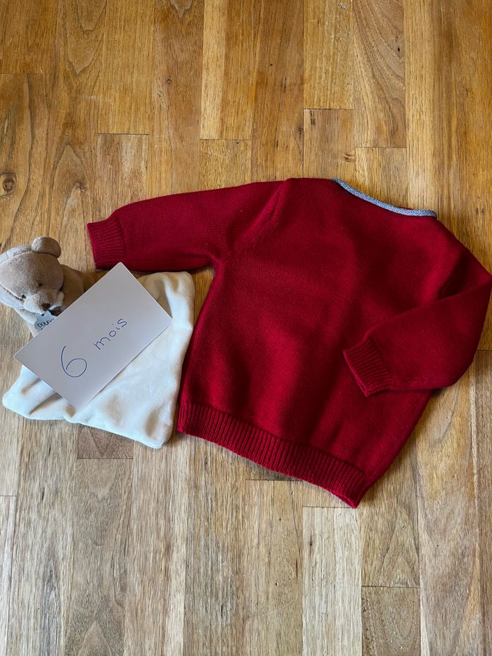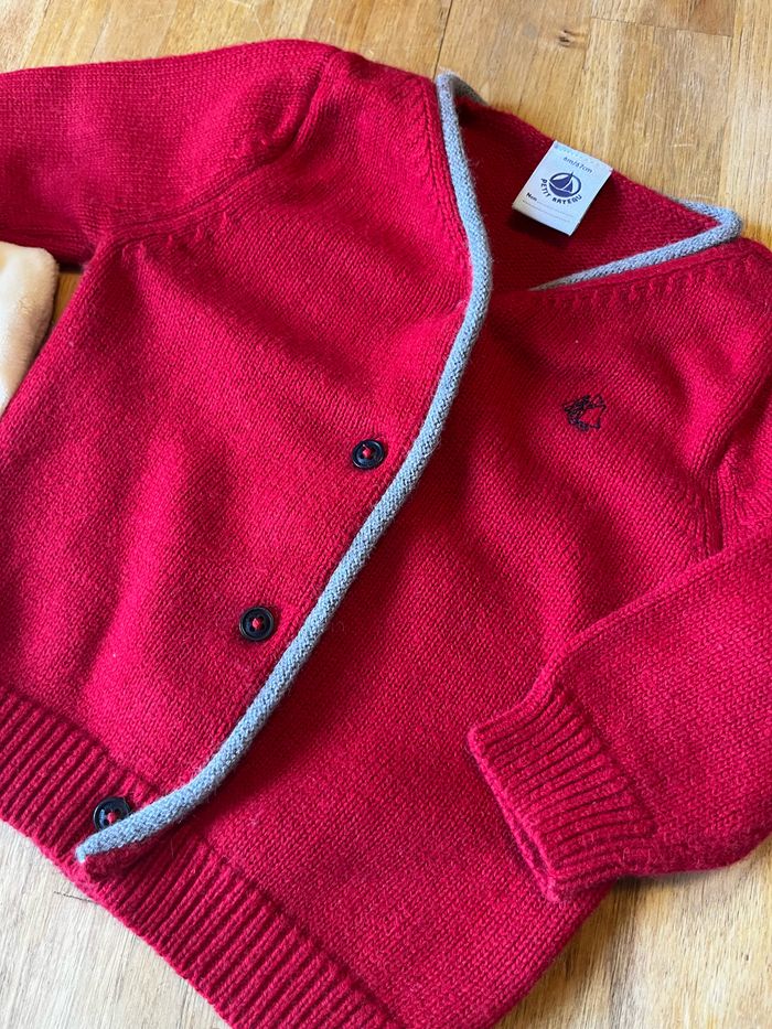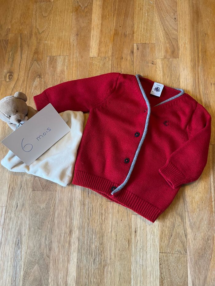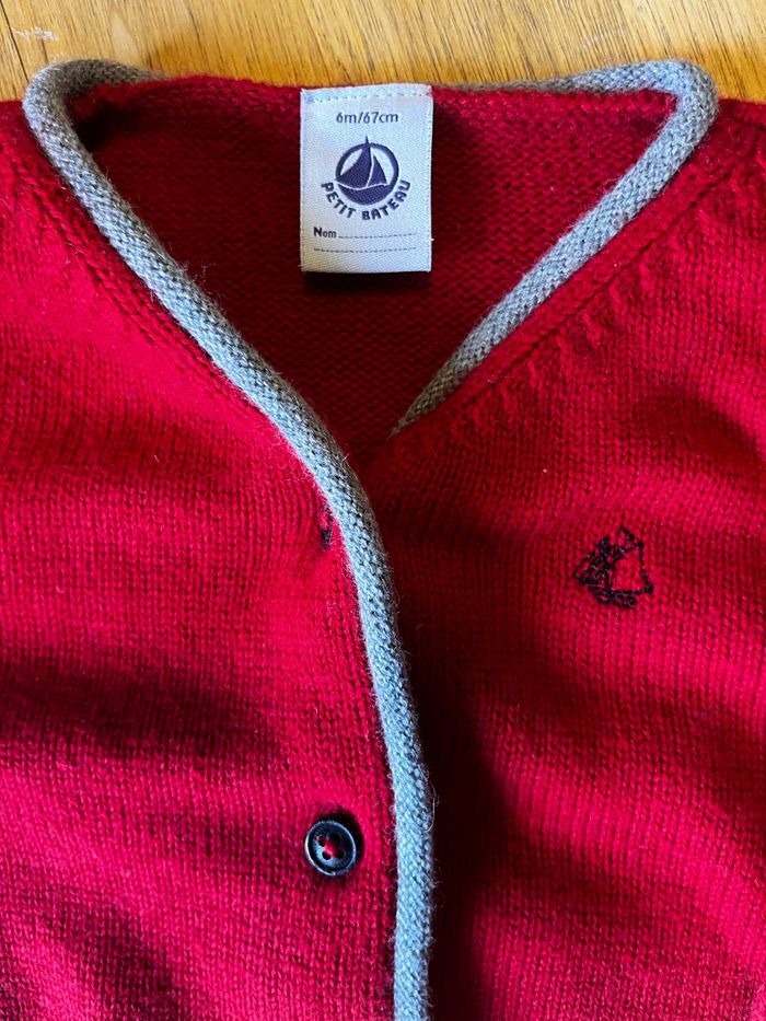 Gilet rouge et bordure grise mixte Petit bateau 6 mois bien chaud. Comme neuf #petitbateau #gilet6mois #petitbateau6mois