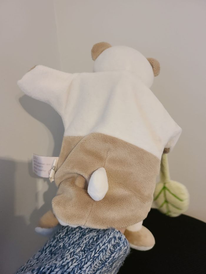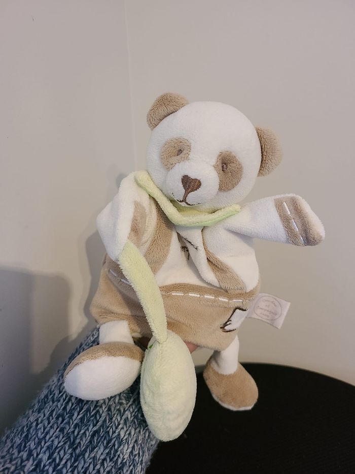 DOUDOU ET COMPAGNIE MARIONNETTE PANDA BLANC BEIGE VERT FEUILLE 118