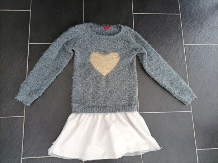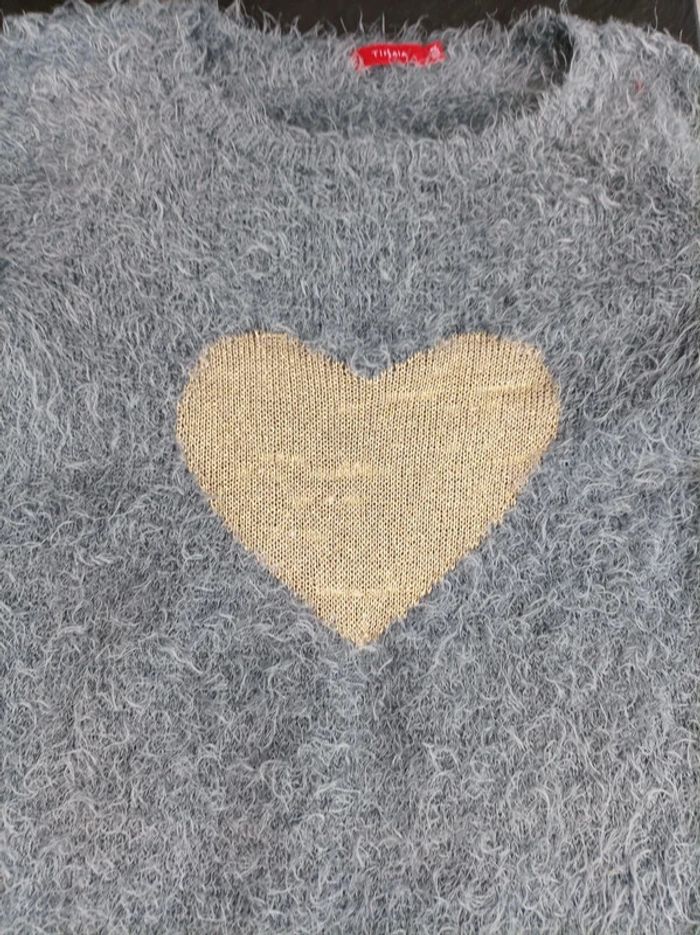 Vends ce joli pull avec la jupe intégrée pour fille de 10 ans Motif coeur doré. La jupe a des points dorés sur le tulle. Excellent état : de tout petits accrocs sur le cœur mais peu visibles (voir photos). #titiya76pullfille10ans #titiya76fille #titiya7610ans #titiya76fille10ans