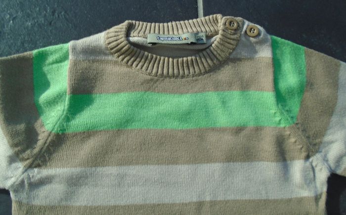 Vends ce beau pull léger pour garçon de 18 mois (81 cm). Un joli liseré vert rend ce pull très original. Excellent état : aucun trou, aucune tache. #titiya76pullgarçon18mois #titiya76garçon18mois #titiya76garçon #titiya7618mois #titiya76tapealoeil