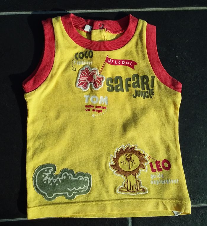 Vends ce tee shirt sans manches joli et coloré. Aucun trou. Aucune tâche. #titiya76debardeurgarçon6mois #titiya76garçon6mois #titiya76garçon #titiya766mois