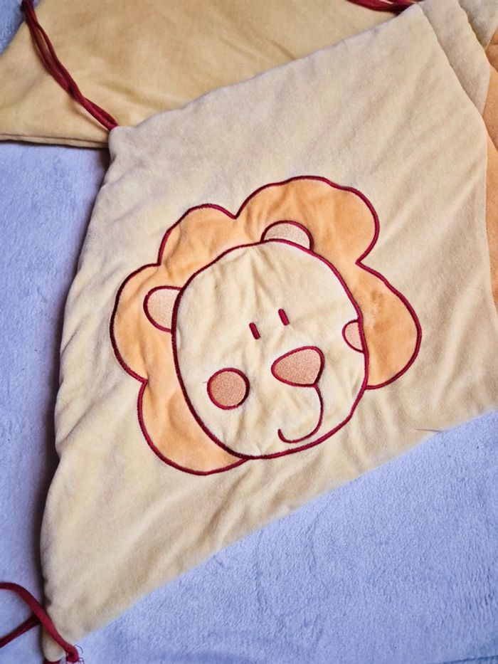 Très bon état Tour de lit moelleux doux Couleur jaune Motif lion Marque babycalin Matière : velour de coton A nouer #korallie_bebe #tourdelit #bebecalin