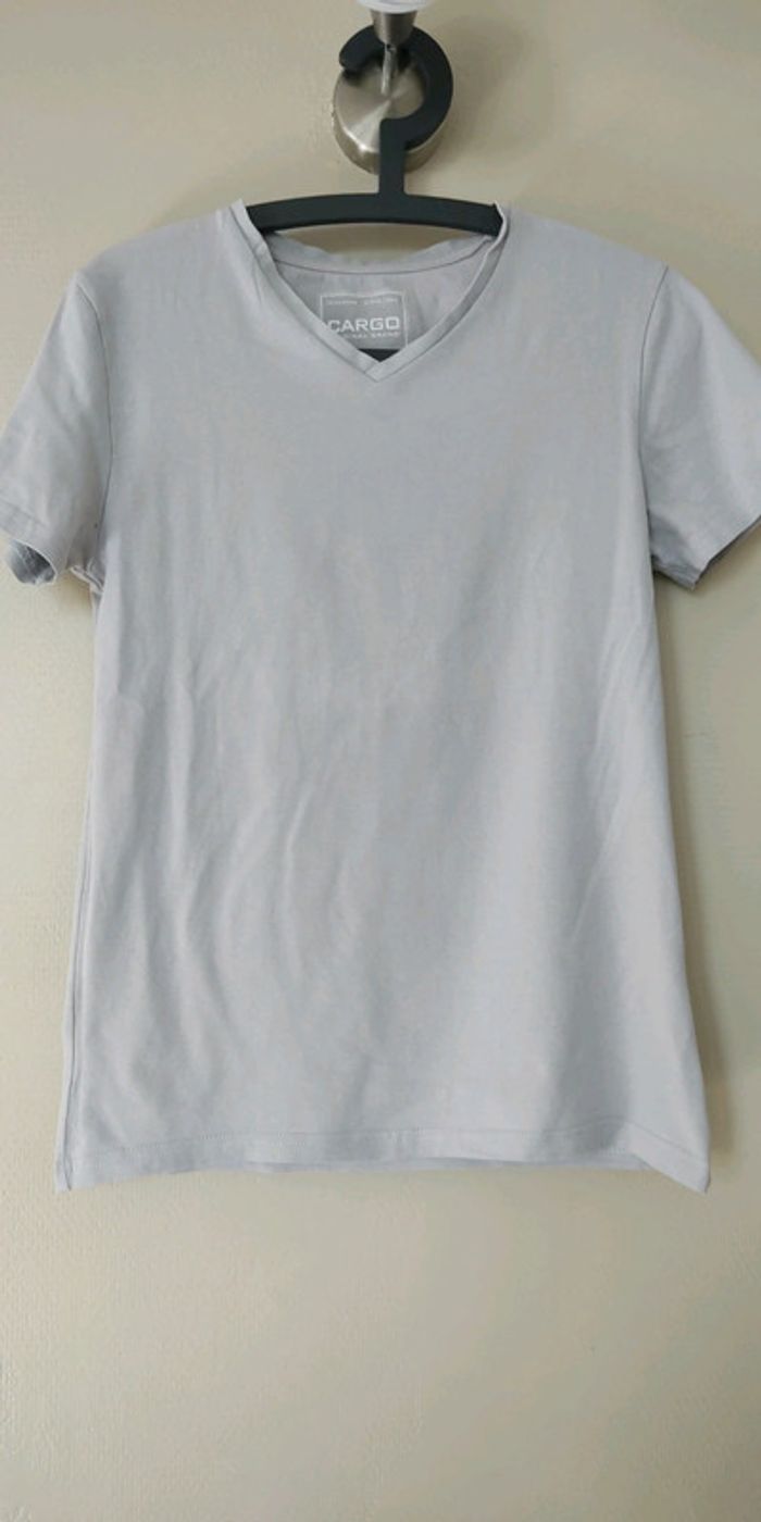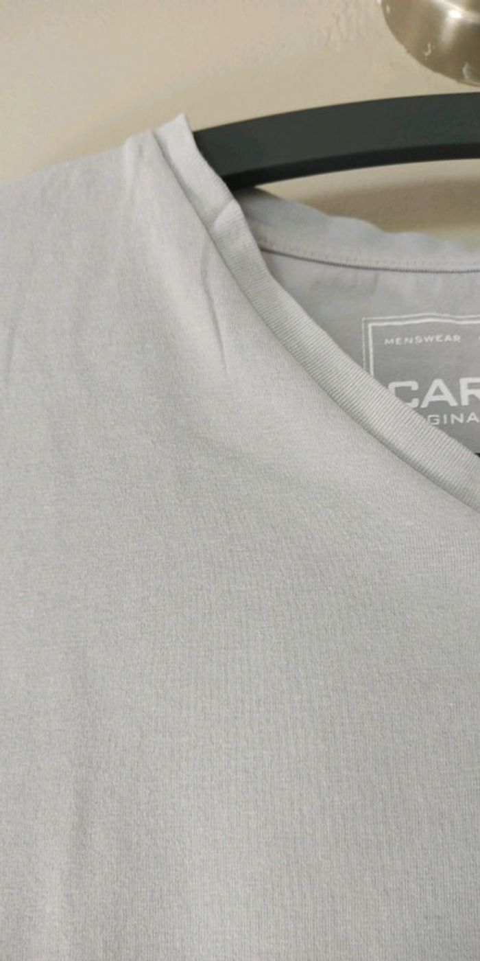#hommepsymary15 Tee shirt manches courtes Col V taille L Gris très clair Je le mets en bon état car porté plusieurs fois Je ne sais plus la marque l'étiquette a été coupée