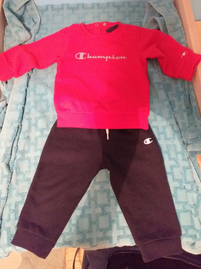 Ensemble en très bon état. Le bas a été porté quelques fois, le haut une seule fois. Le haut est rouge vif. Taille: 6 mois ou 68cm.