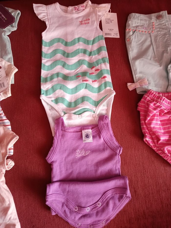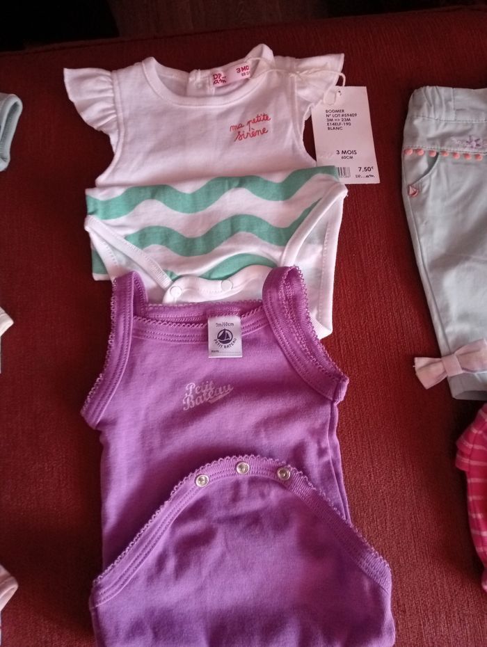 Lot de 9 pièces fille 3 mois neuves. Taille 3 mois fille ete 3 t-shirts encore avec étiquette  2 sergent major et 1 du pareil au même 1 body neuf SS étiquette petit bateau 1 body neuf avec étiquette du pareil au même 1 mini short culotte neuve SS étiquette du pareil au même 1 pantalon sergent major neuf avec étiquette 1 legging neuf avec étiquette petit bateau 1 legging neuf SS étiquette sergent major