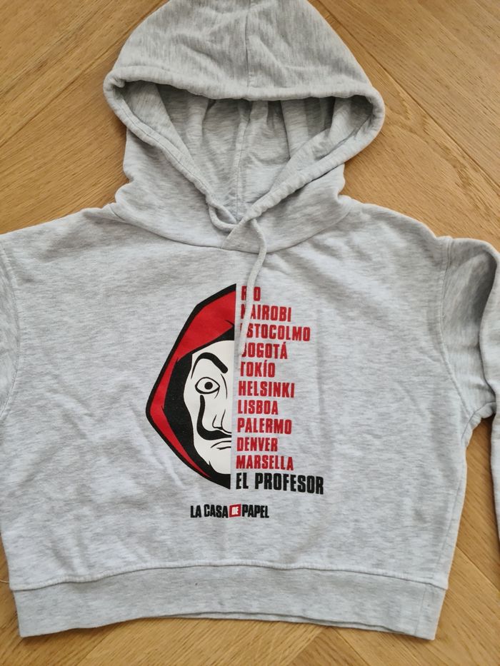 Pull à capuche fille de marque Jennyfer La casa de papel Netflix ; Taille XXS ; Ton gris clair ; En très bon état