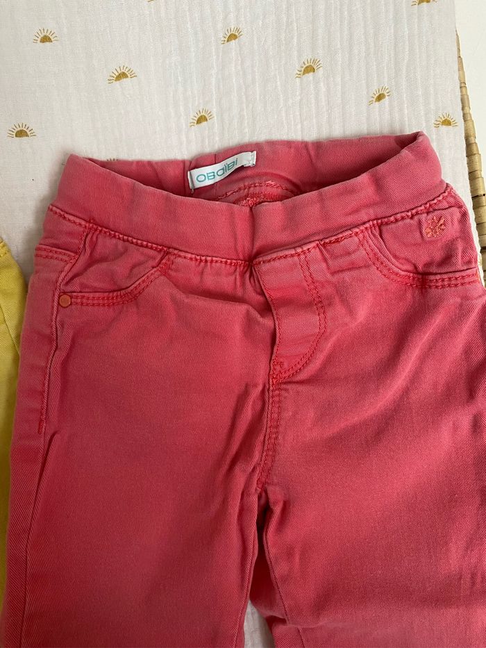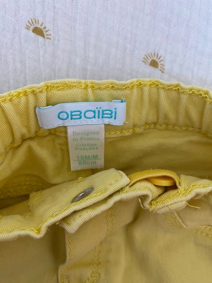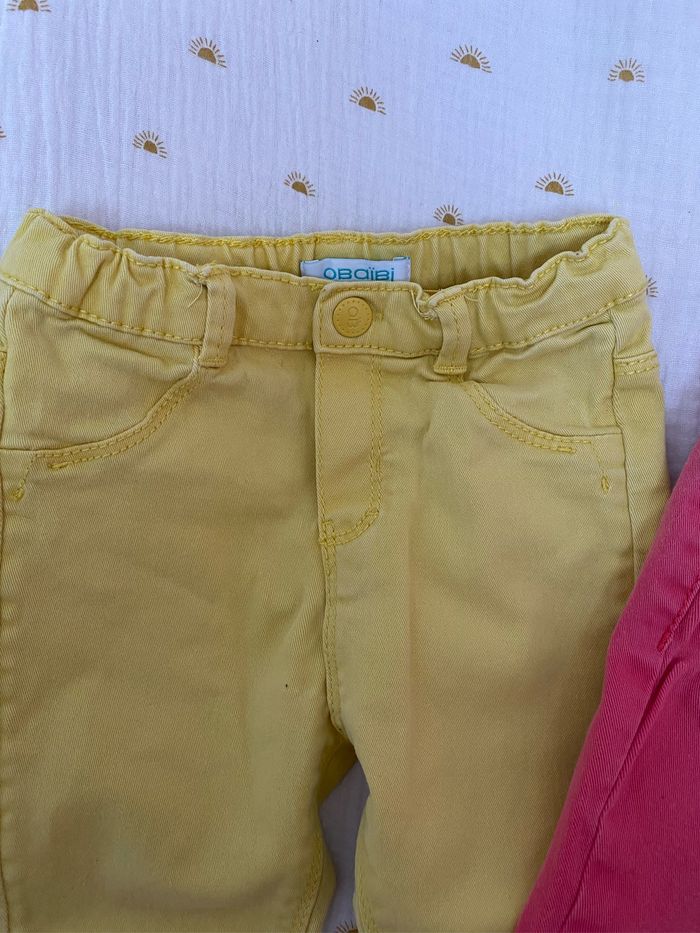 Lot de 2 pantalons bébé fille, un jaune avec bouton et l’autre jaune taille élastique OBAIBI - 18 mois Les 2 sont réglables à la taille