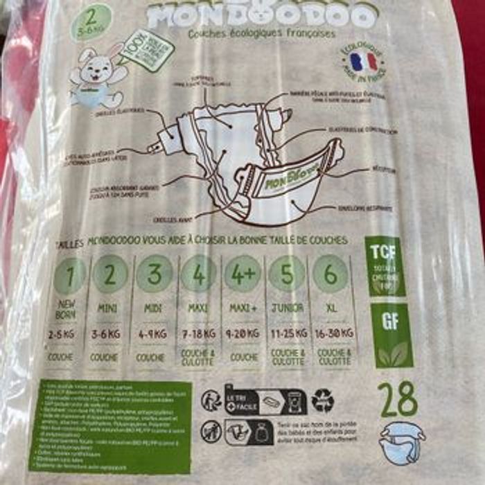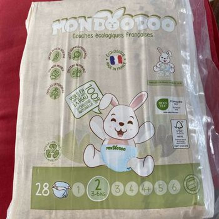 Couches écologiques françaises Mondoodoo taille 2 3-6 kilos. Neuf paquet