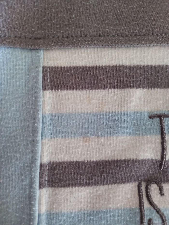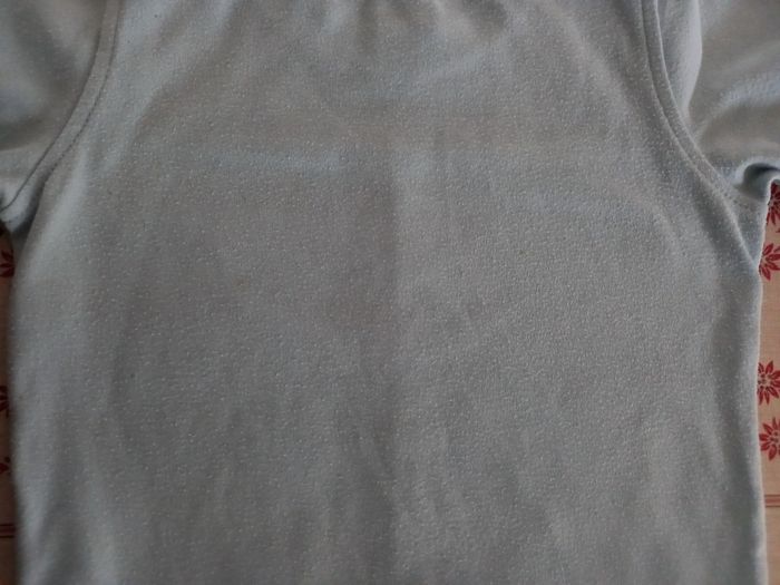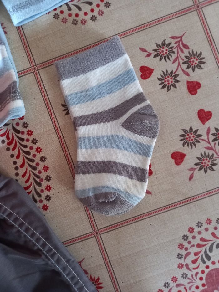 Chaussettes très légèrement tâché a force de marcher et petite tâche sur l'avant du pull et l'arrière petite tâche de rouille causé par la machine à laver. (Voir les photos)
