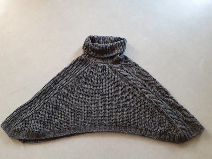 Poncho gris, en laine, torsade sur un côté, col roulé taille 38/40