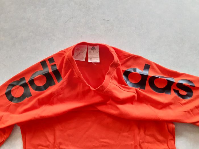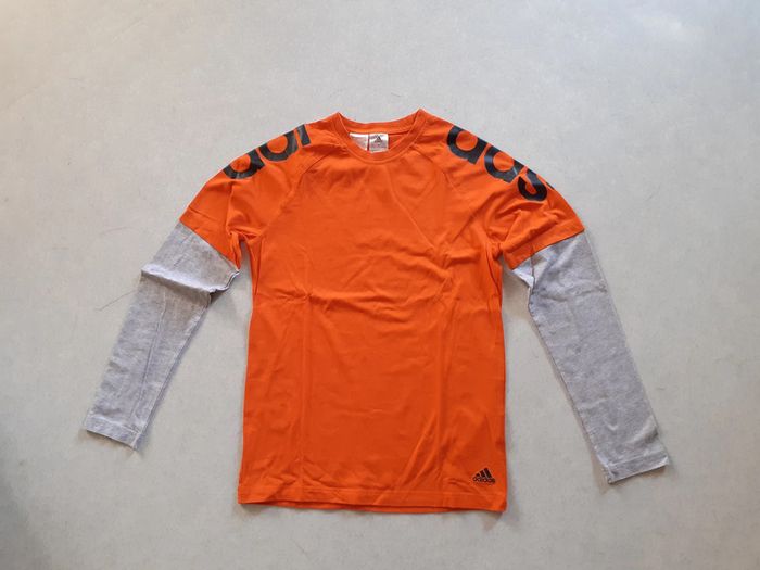 Maillot manches longues, orange, manches grises avec logo noir sur les épaules de marque Adidas taille 13/14 ans Très bon état