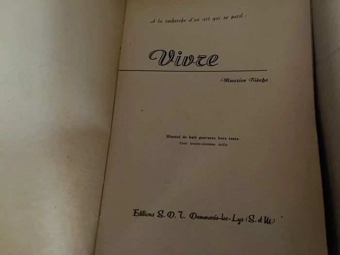 À la recherche d’un art qui se perd : Vivre de Maurice Tièche 1950 éditions S.D.T Damaries-les-Lys n°92 Avec dédicace sur la première page le 18 août 1951 Illustré de huit gravures hors texte Cent trente-sixième mille Livre abîmé par le temps, petites déchirures, tâches, coins abîmé, pages très fragiles : voir les photos Pas de pages manquantes J’ai également 5 livres de Maurice Tièche « le bonheur chez soi » pas encore publié ici mais si vous intéressé envoyez moi un message #lavieenroselivres #livrevivre #mauricetieche #livreancien #ancienlivre #livreretro #annee50 #livreannée50