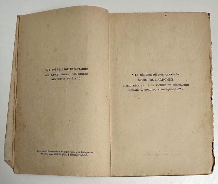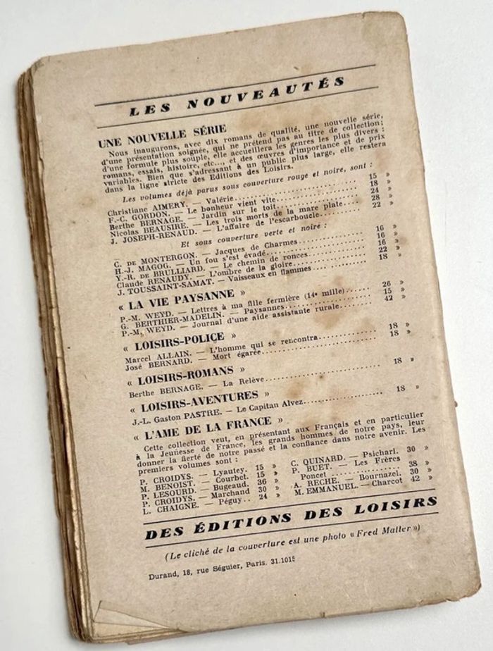 Livre vendu en l’état, livre abîmé donc traces de taches, de pliures, un nom rayé, de petites déchirures, de rousseurs, de pages jaunies avec le temps ou de manque…..