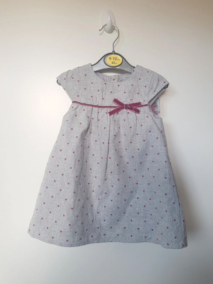 Tous mes articles Primark : #primarksev Toutes mes robes : #robesev Tous mes habits ♀️ 9 mois : #9moissevfille Tous mes habits ♀️ 12 mois : #12moissevfille 🚨 Prix fixe Lot d'une robe à manches courtes + bas collants Robe doublée Marque : PRIMARK Couleurs : gris et cœurs bordeau rosé Taille : 9/12 mois - 80 cm État : neuf avec étiquette 100% coton Doublure : 100% polyester Retrait sur place ou envoi.