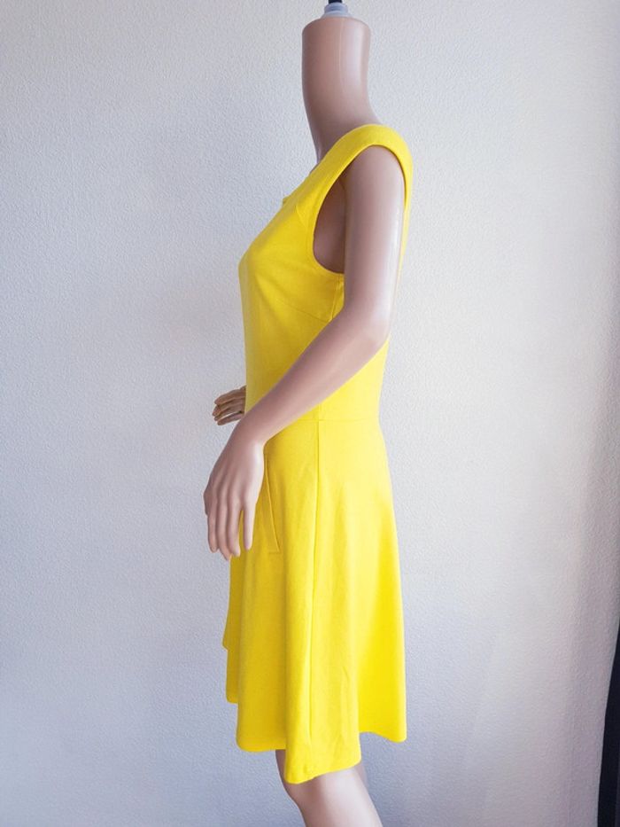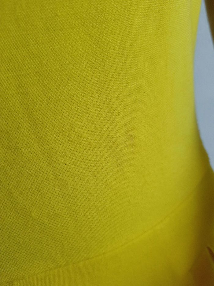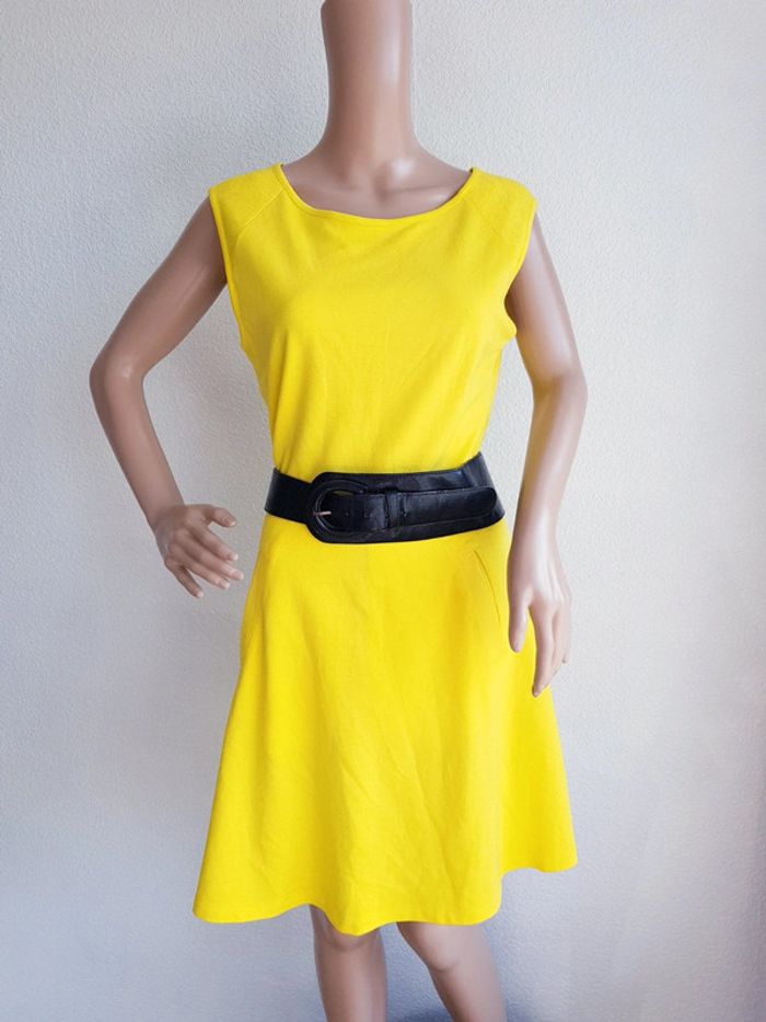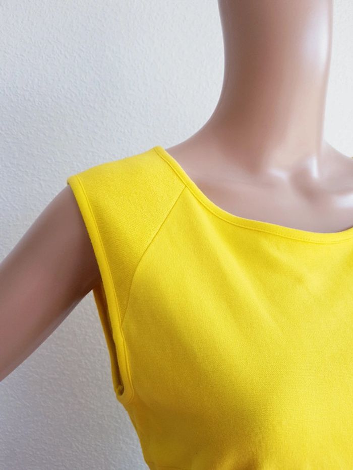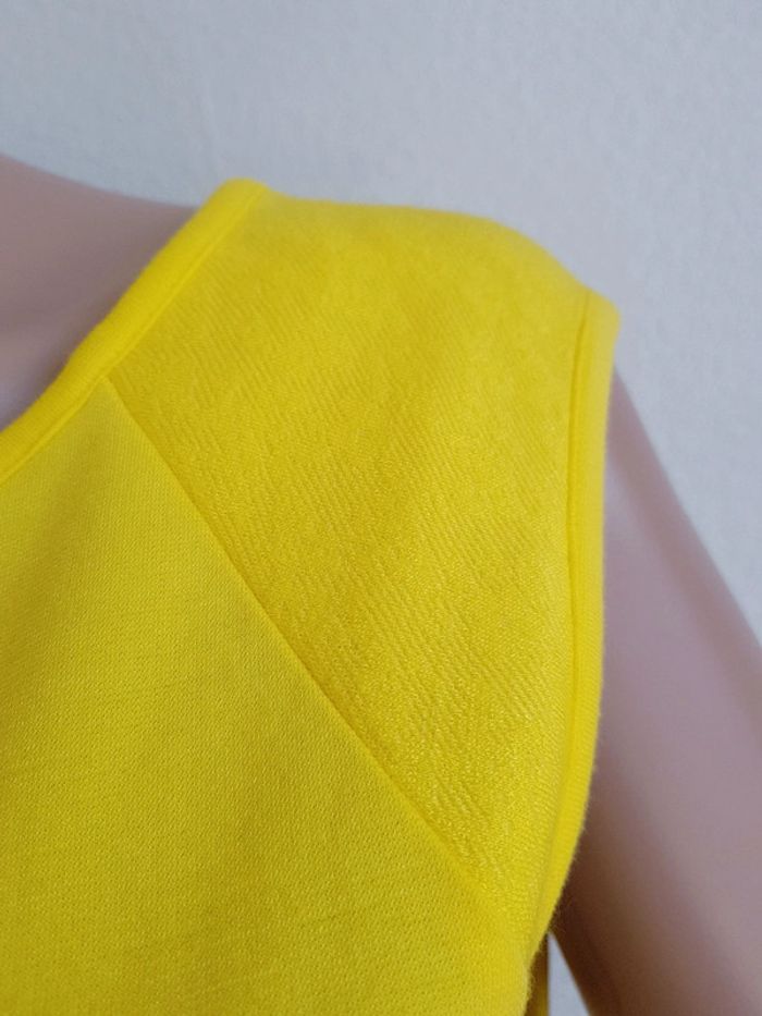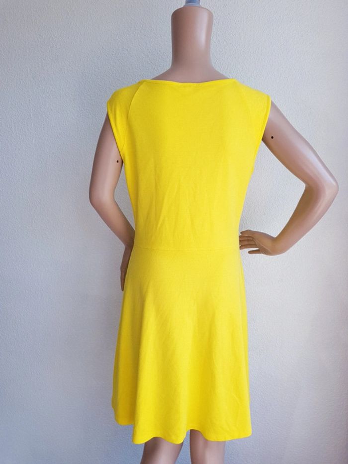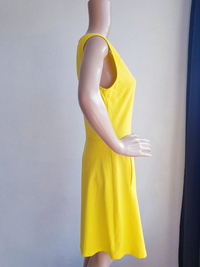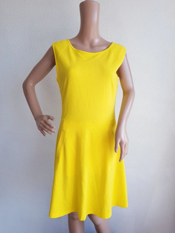 Tous mes articles Esprit : #espritsev Toutes mes robes : #robesev Tous mes habits taille M : #mediumsev Robe sans manches Marque : ESPRIT Couleur : jaune Taille : médium État : bon état Tissu très très légèrement bouloché au niveau de la ceinture + petite tâche. Le tout est masqué par la ceinture. Ceinture non fournie Deux poches sur le côté 65% modale ; 30% polyamide ; 5% élasthanne Garniture épaule : 82% viscose ; 18% polyamide Retrait sur place ou envoi.