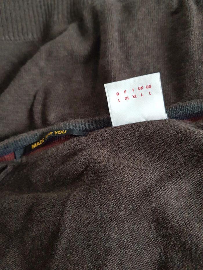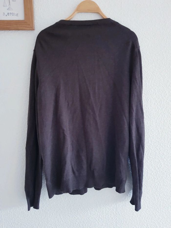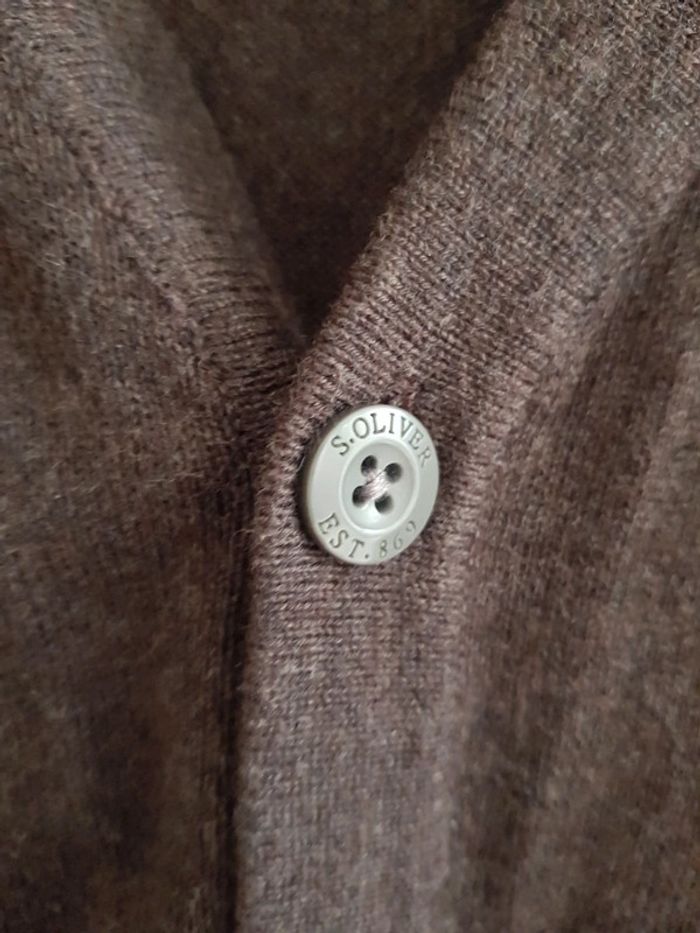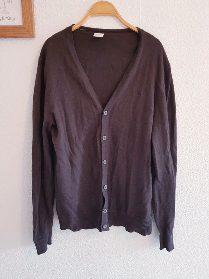 Tous mes articles pour homme : #hommesev Tous mes articles S. Oliver : #soliversev Tous mes gilets : #giletsev Tous mes pulls : #pullsev Tous mes habits taille XL : #xlsev Gilet / cardigan pour homme Marque : S. OLIVER Couleur : brun Taille : F : XL État : très bon état (très peu porté) 100% coton Largeur épaules : 49 cm Largeur aisselles : 52 cm Longueur : 71 cm Longueur manches : 68 cm Retrait sur place ou envoi.