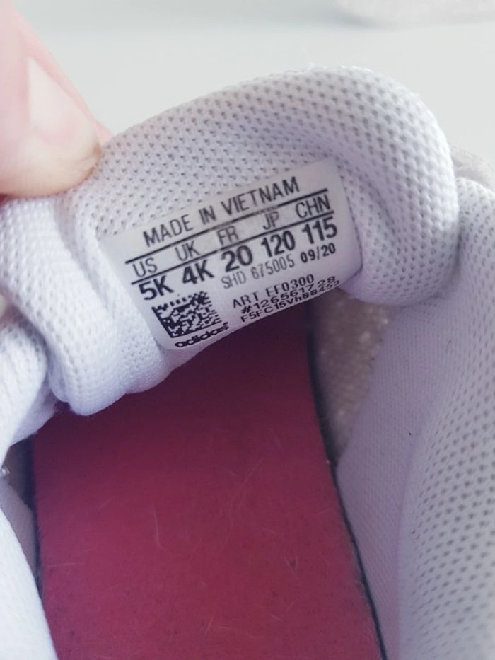 Tous mes articles Adidas : #adidassev Toutes mes chaussures : #chaussuresssev Toutes mes baskets : #basketssev Toutes mes chaussures en 20 : #20sev Baskets avec 2 bandes anto-agrippantes Marque : ADIDAS Modèle : Advantage Couleurs : blanc et rose Pointure : 20 État : très bon état Vendues dans la boîte à chaussures d'origine. Retrait sur place ou envoi.