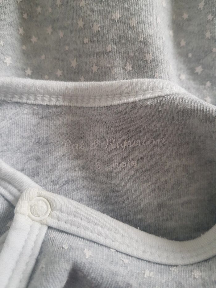 Tous mes articles Pat et Ripaton : #patetripatonsev Tous mes pyjamas : #pyjamasev Tous mes habits garçon 6 mois : #6moissevgarcon Grenouillère / pyjama une pièce / dors bien Marque : PAT ET RIPATON Couleur : gris Taille : 6 mois État : bon état Jauni au deux premiers boutons-pression (voir dernière photo) Étiquette des matières découpée Retrait sur place ou envoi.