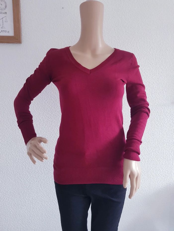 Clockhouse - Pull col V, dos en dentelle - Bordeaux - Neuf ! - photo numéro 7