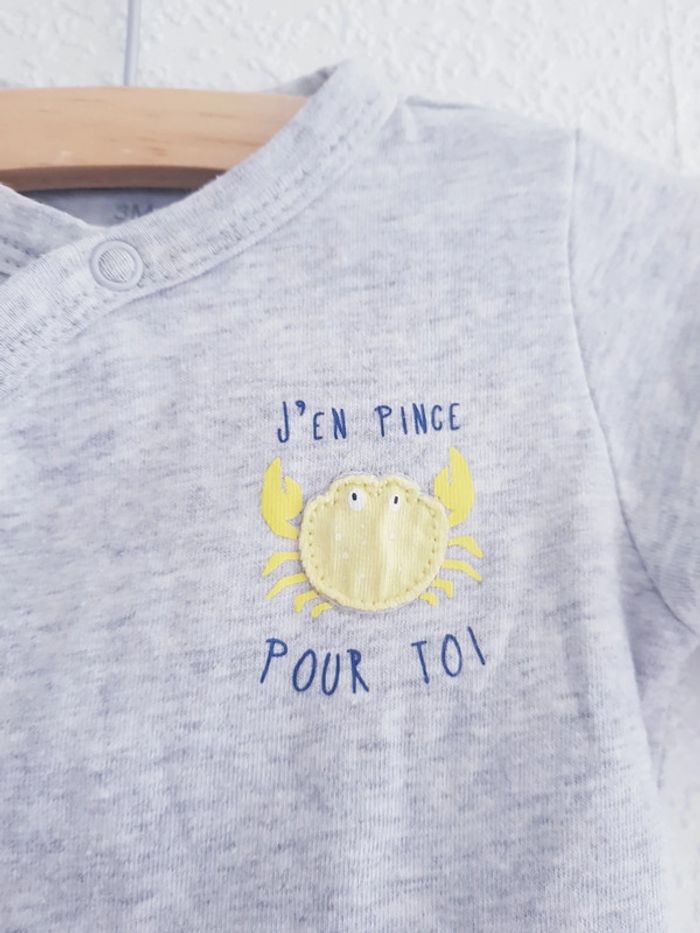 Kiabi - Grenouillère / pyjama une pièce / dors bien - Mixte - J'en pince pour toi 🦀 (3 mois)