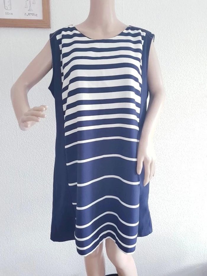 Robe doublée Marque : M&W COLLECTION Couleurs : bleu marine et blanc Taille : XXL État : très bon état Fils tirés par endroit (voir dernières photos) 100% polyester Retrait sur place ou envoi. Tous mes articles M&W Collection : #mwcollectionsev Toutes mes robes : #robesev Tous mes habits taille XXL : #xxlsev