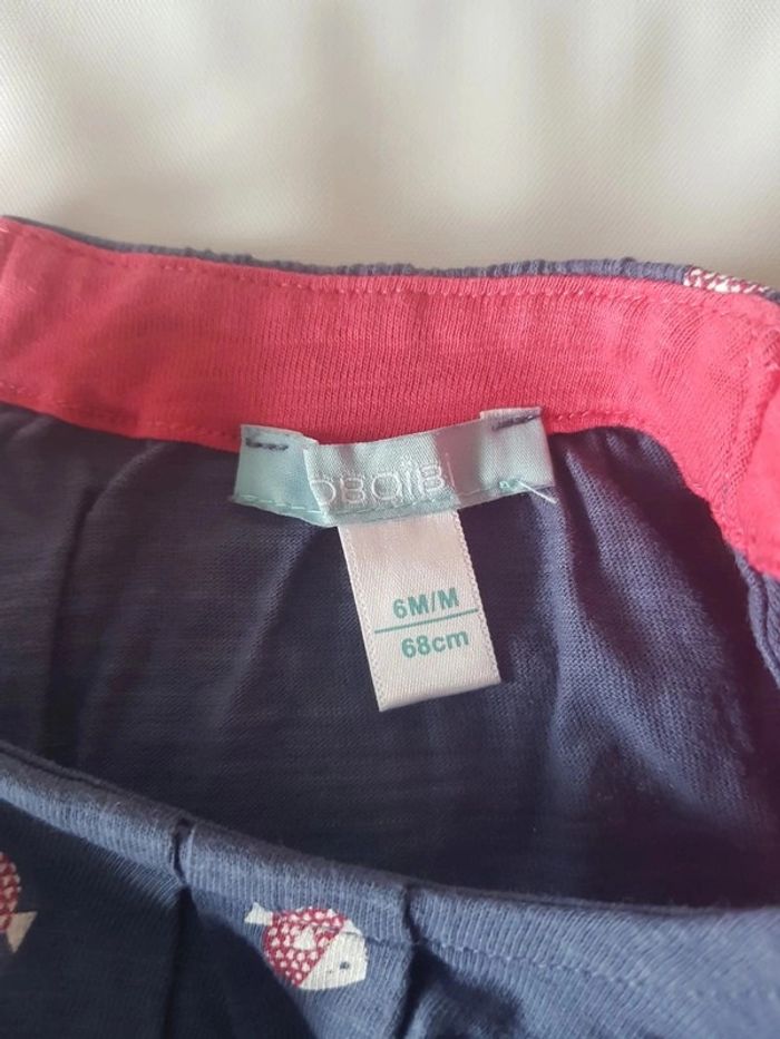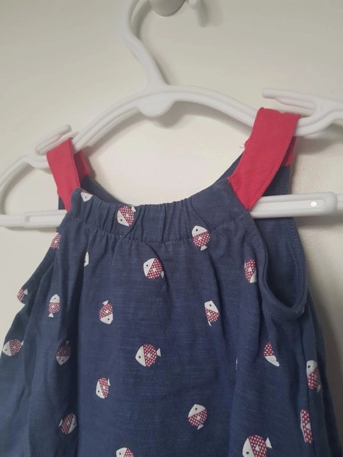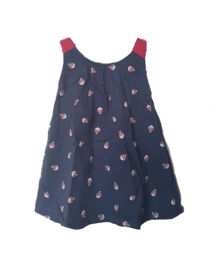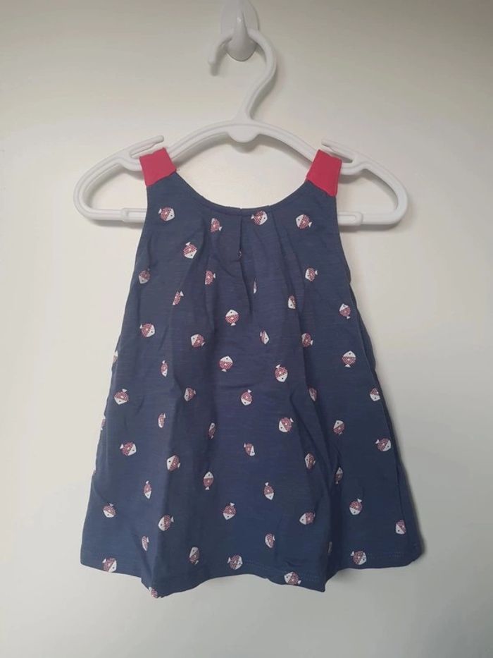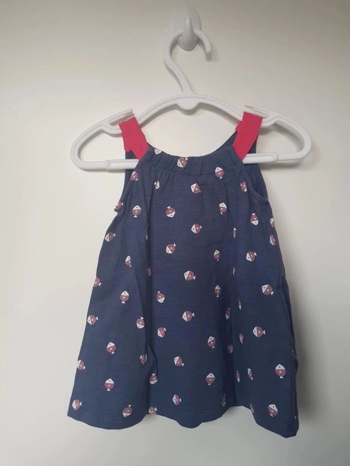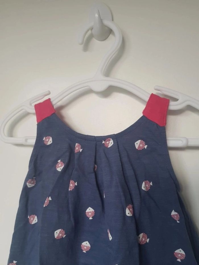 Robe à larges bretelles Marque : OBAÏBI Couleurs : bleu et rose Motifs : poissons Taille : 6 mois - 68 cm État : très bon état (très peu portée) Plus à l'encolure arrondie 100% coton Retrait sur place ou envoi. Tous mes articles Obaïbi : #obaibisev Tous mes habits taille 6 mois : #6moissev