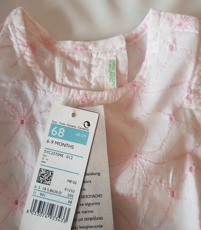 🚨 Prix fixe Blouse sans manches courtes Marque : UNITED COLORS OF BENETTON Couleurs : blanc et rose Taille : 6/9 mois - 68 cm État : neuf avec étiquette 100% coton Retrait sur place ou envoi. Tous mes articles pour bébé/enfant : #bebeenfantsev Tous mes articles United Colors of Benetton : #benettonsev Tous mes habits fille taille 6 mois : #6moissevfille Tous mes habits fille taille 9 mois : #9moissevfille
