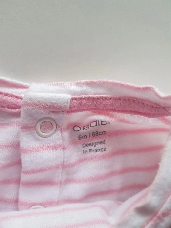 Tous mes articles Obaïbi : #obaibisev Tous mes pyjamas : #pyjamasev Tous mes habits fille 6 mois : #6moissevfille Tous mes articles pour bébé/enfant : #bebeenfantsev Combinaison courte à manches courtes Marque : OBAÏBI Couleurs : blanc ligné rose Motif : 2 girafes Taille : 6 mois - 68 cm État : très bon état - très peu portée Une légère petite tâche près du col (voir photo) 100% coton Retrait sur place ou envoi.