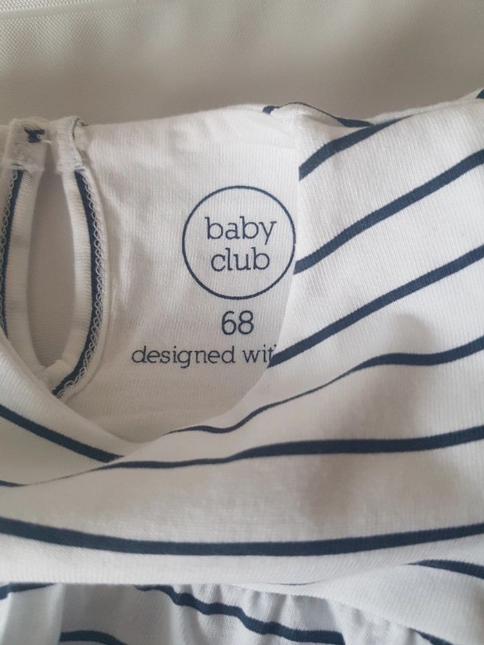 Robe à manches courtes Marque : BABY CLUB Couleurs : blanc ligné bleu marine Taille : 6 mois - 68 cm État : neuf 100% coton Retrait sur place ou envoi. Tous mes articles pour bébé/enfant : #bebeenfantsev Tous mes articles Baby Club : #babyclubsev Tous mes habits taille 6 mois : #6moissev