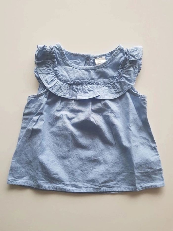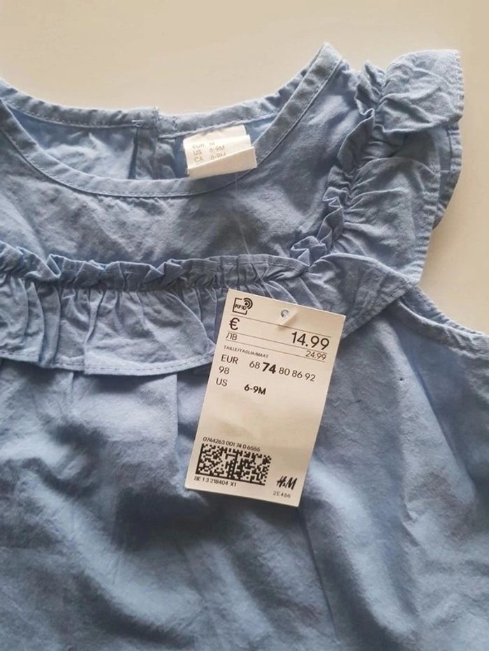 Chemisier / blouse sans manches Marque : H&M Couleur : bleu Taille : 6/9 mois - 74 cm État : neuf avec étiquette 100% coton Retrait sur place ou envoi. Tous mes articles pour bébé/enfant : #bebeenfantsev Tous mes articles H&M : #hmsev Tous mes habits fille taille 6 mois : #6moissevfille Tous mes habits fille taille 9 mois : #9moissevfille