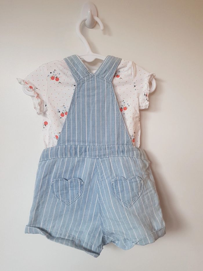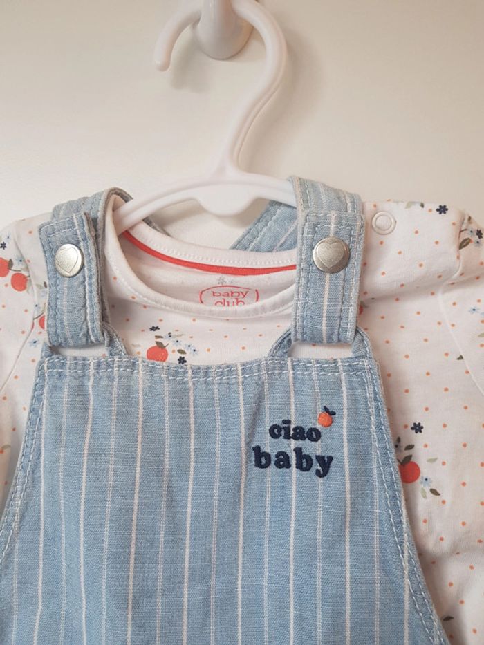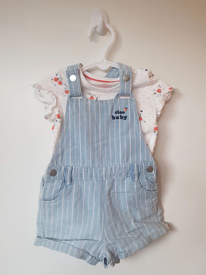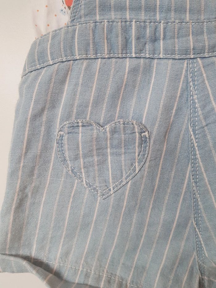 Baby Club - Salopette short en lin + tee-shirt à manches courtes (6 mois)