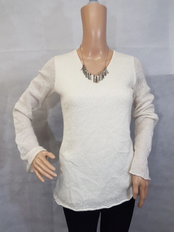 Pull en maille Le pull est doublé (voir avant-dernière photo) Marque : MORGAN DE TOI Couleur : blanc cassé Taille : médium État : très bon état Retrait sur place ou envoi. Tous mes articles Morgan de Toi : #morgansev Tous mes pulls : #pullsev Tous mes habits taille M : #mediumsev