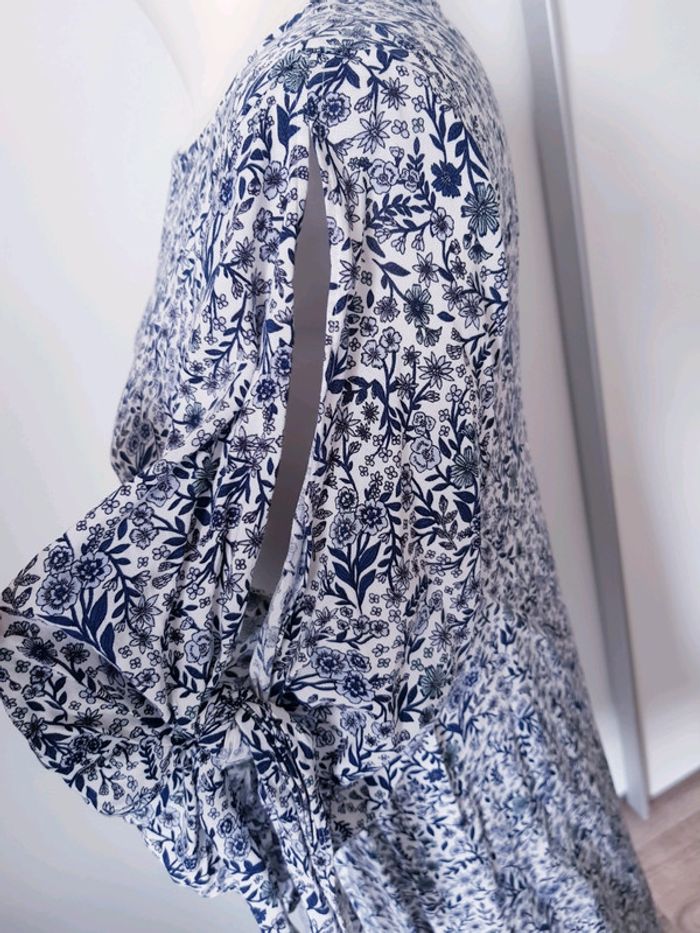 Robe Marque : H&M Couleurs : bleu et blanc Taille : 40 État : neuf 100% viscose Nœuds aux manches Retrait sur place ou envoi.