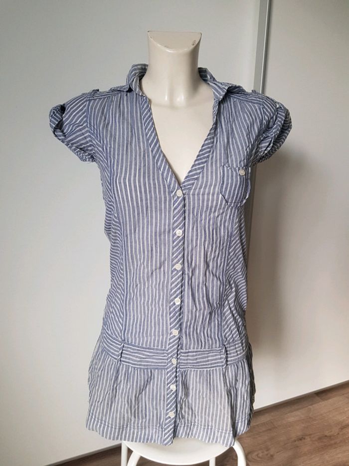 Longue chemise à manches courtes Marque : BERSHKA Couleurs : bleu et blanc Taille : small État : très bon état 100% coton Possibilité d'être portée avec une ceinture Retrait sur place ou envoi. #bershka #bershkasev #chemisesev #smallsev #etesev