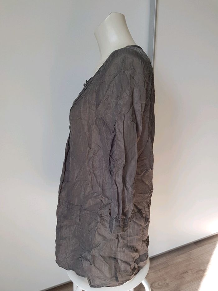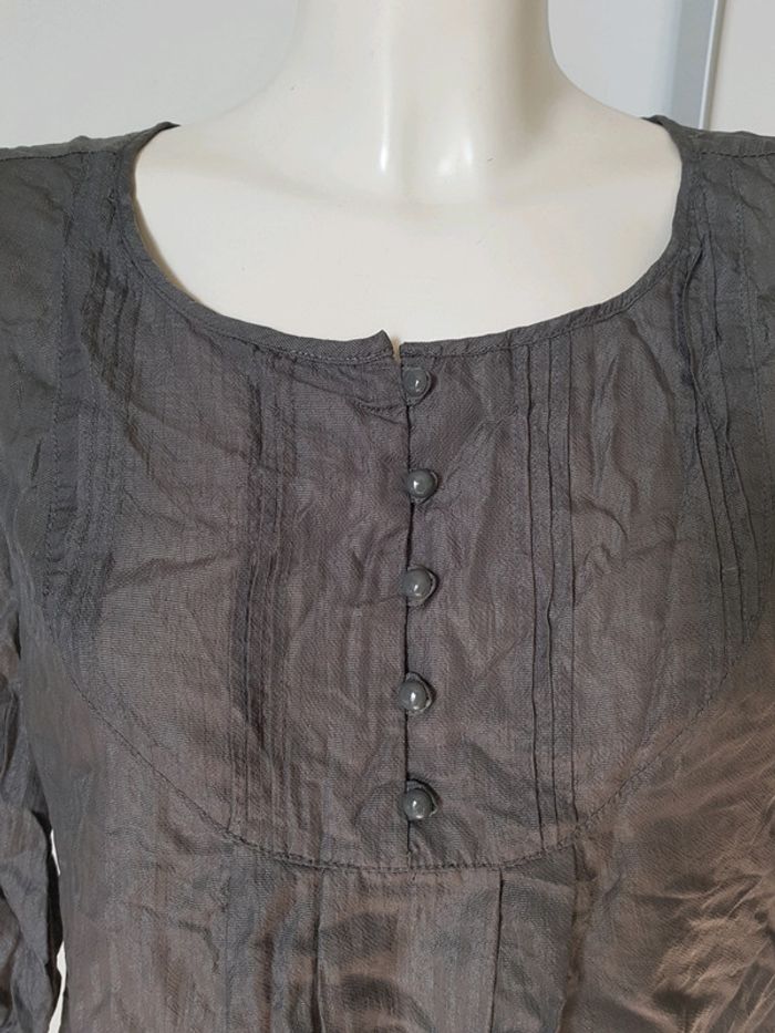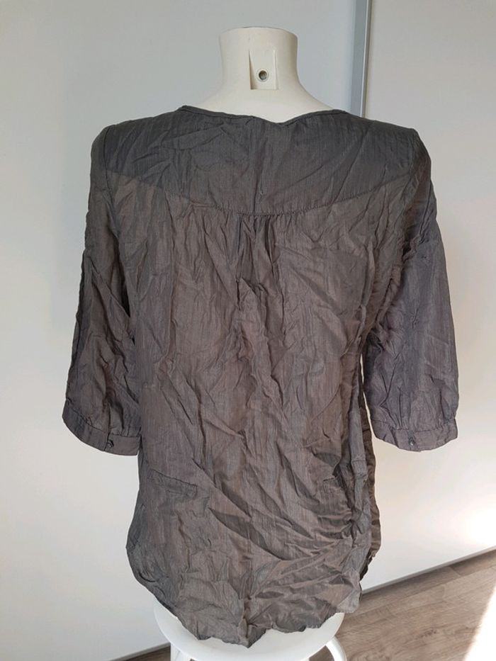 Blouse manches ¾ Marque : CAMAÏEU Couleur : kaki Taille : 44 État : bon état 54% polyamide ; 46% lyocell Tissu un peu brillant Petites bouloches sous les aisselles + très légères auréoles Retrait sur place ou envoi. #camaieu #camaieusev #blousesev #chemisesev #xxlsev #etesev