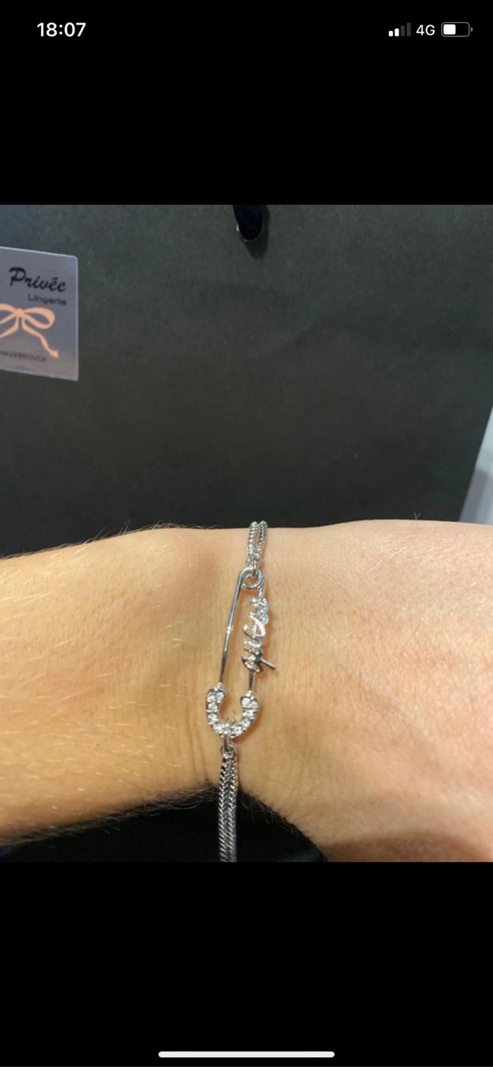 Très peu porté donc état proche du neuf Non reglable Argenté et strass sur l’épingle