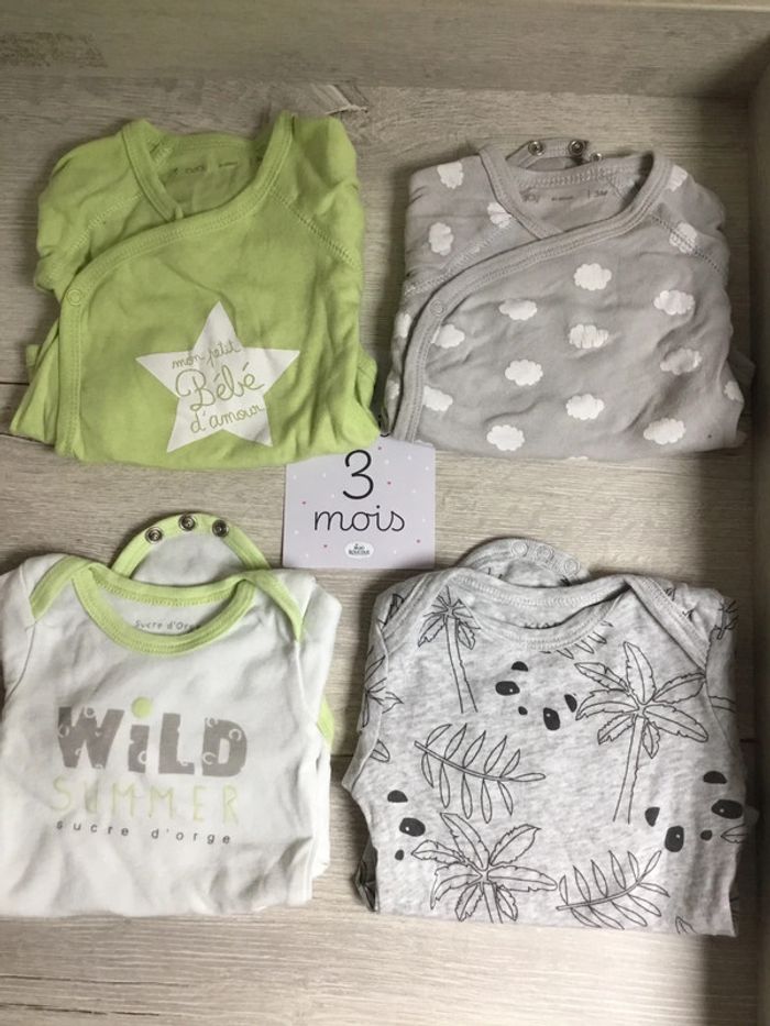 Lot de 4 bodies Différentes marques Taille 3 mois
