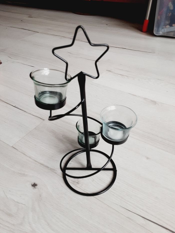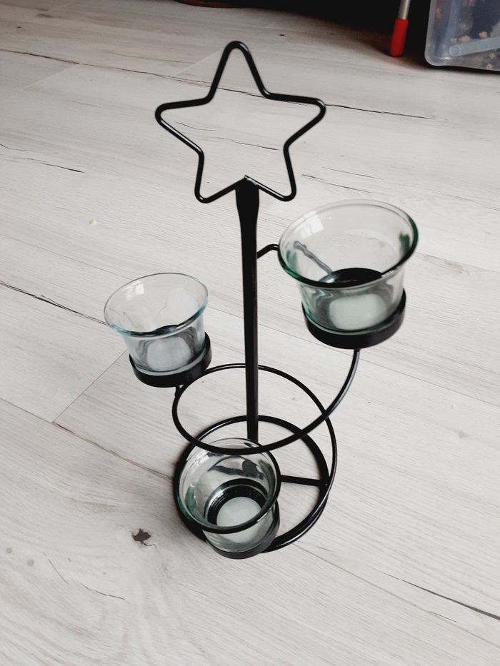 Bougeoir 3 bougies noir étoile 32 cm de hauteur - photo numéro 1