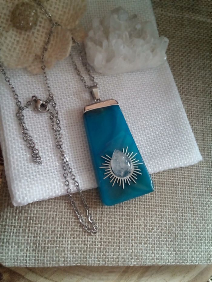 Collier en pierre naturelle d'agate bleu et cristal de quartz - photo numéro 1