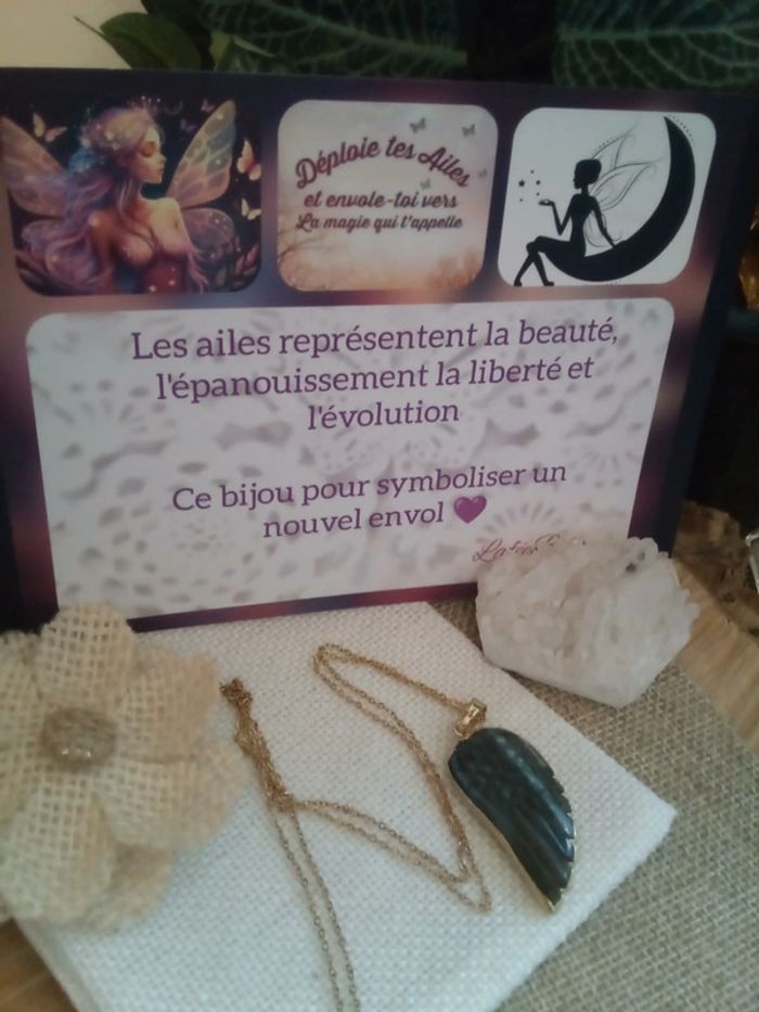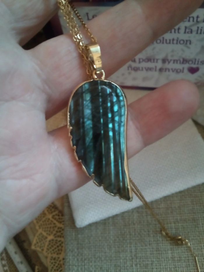 Collier aile en pierre de labradorite naturelle - photo numéro 1