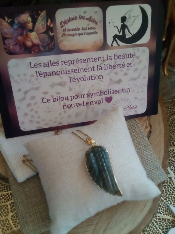Collier aile en pierre de labradorite naturelle - photo numéro 2